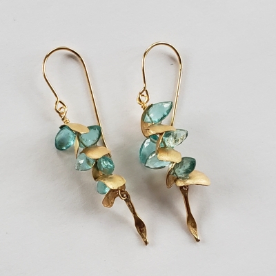 Lightweight earrings with golden petals.
