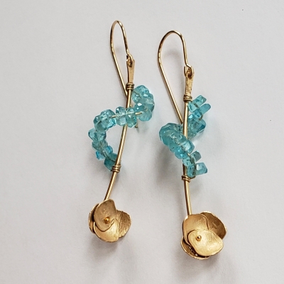 Faceted aquamarine stones, hand forged 14k gold filled flowers.