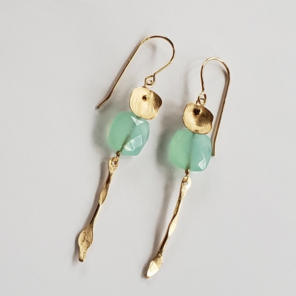 Square shaped blue chalcedony earrings, hand forged gold accents.