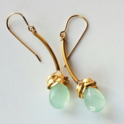 Long blue chalcedony earrings, 14k gold filled.