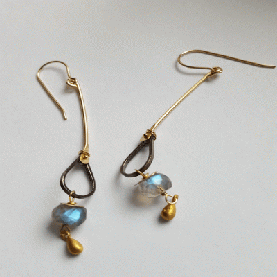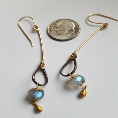 Labradorite earrings, 14kt gold filled, oxydized sterling silver. E87