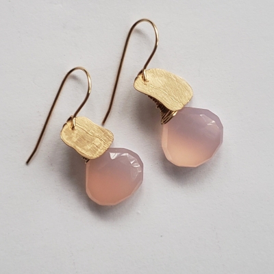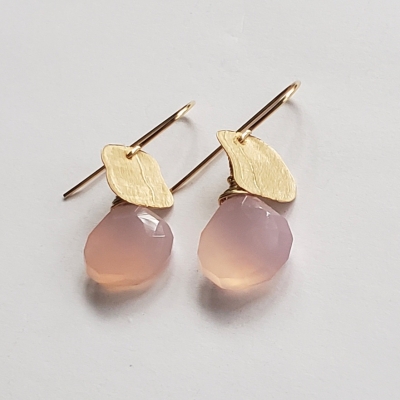 Lovely pink chalcedony with hand forged 14k gold filled corn flakes.