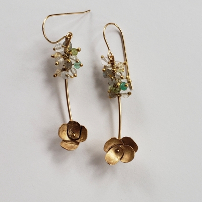 Mixed gemstones, hand forged flowers.