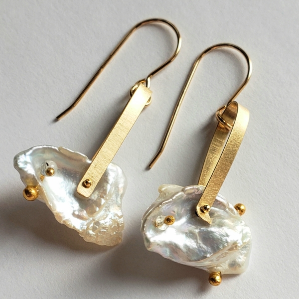 Beautiful one of a kind shaped keshi pearl earrings, very lightweight.