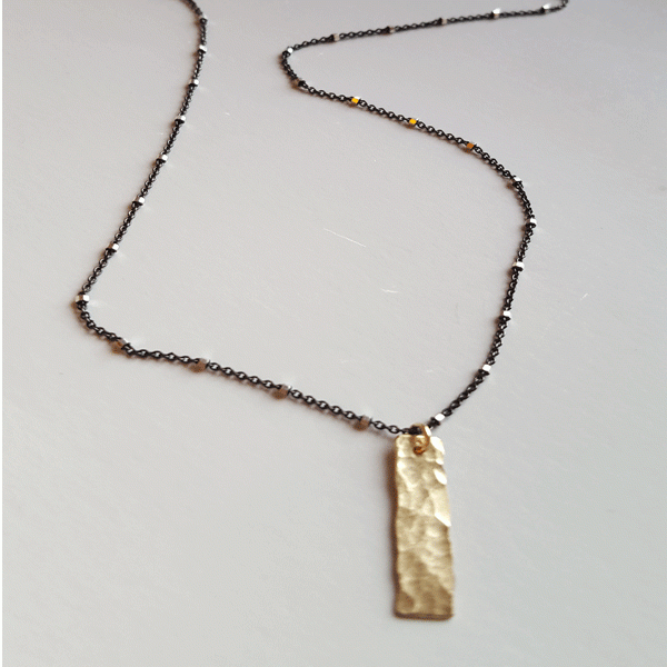14k gold filled bar, oxidized sterling silver chain.