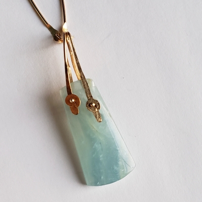 Charming blue calcite pendant swing below hand made stick chain, 14k gold filled.