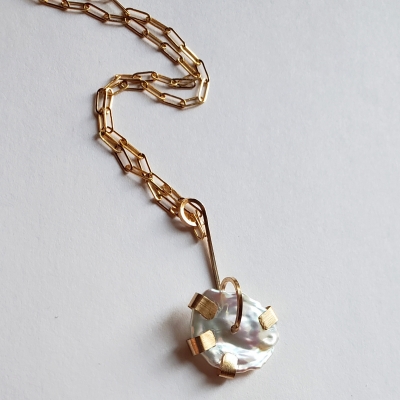 Lovely white keshi perl pendant, 14k gold filled.
