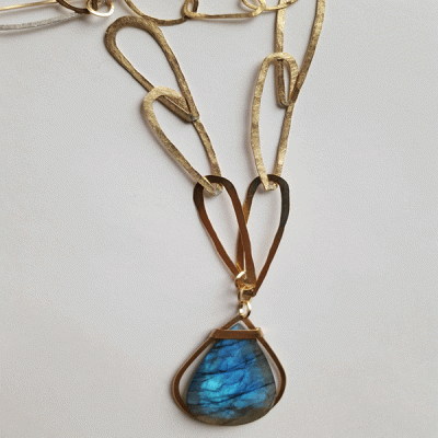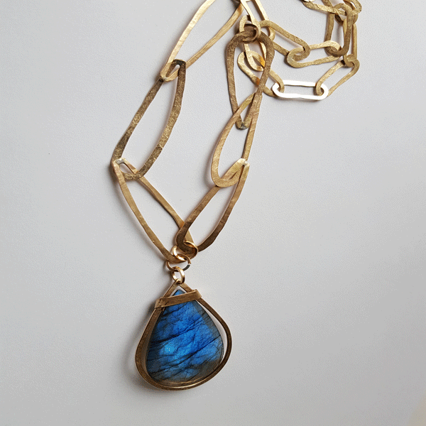 One of a kind, amazing blue labradorite pendant, hand made 14kt gold filled chain.
