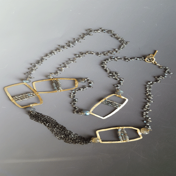 Long labradorite necklace, 14k gold filled, silver. NN253