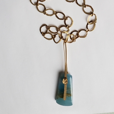 Lovely blue calcite necklace, 14k gold filled. N243