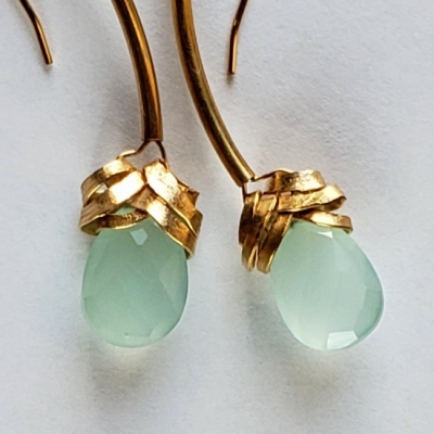 Long blue chalcedony earrings, 14k gold filled.