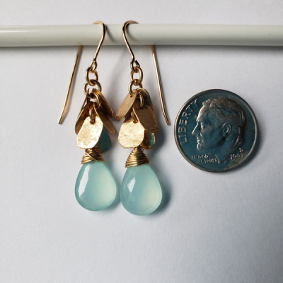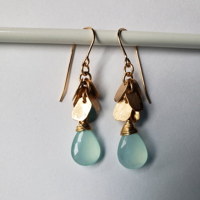 Blue chalcedony earrings with gold pedals, 14k gold filled. E121