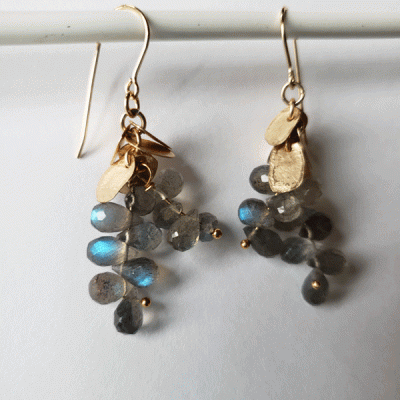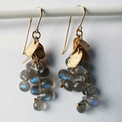 Striking labradorite grapes on the vine earrings, lightweight, handmade.
