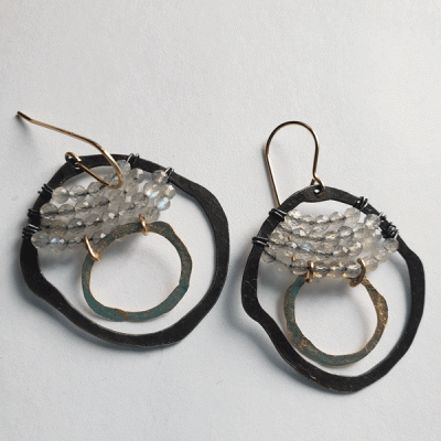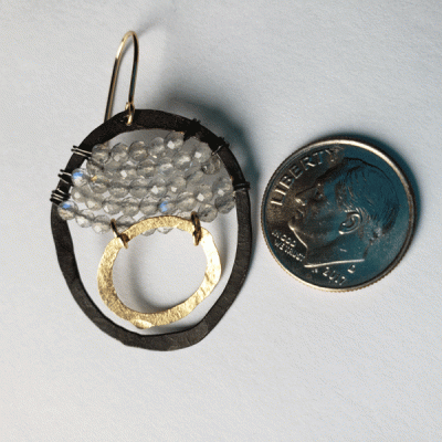 Labradorite with a lighter shade of blue, contemporary earrings.
