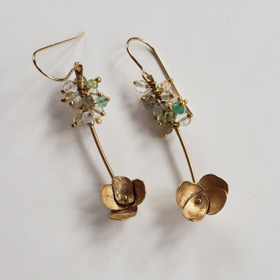 Mixed gemstones, hand forged flowers.