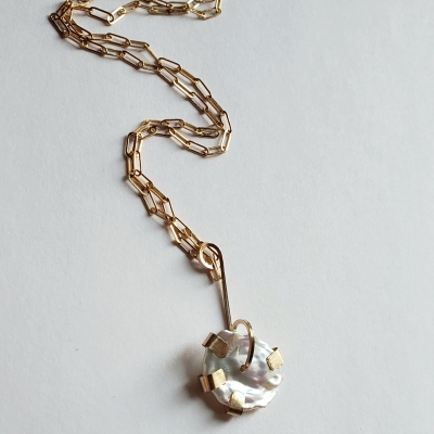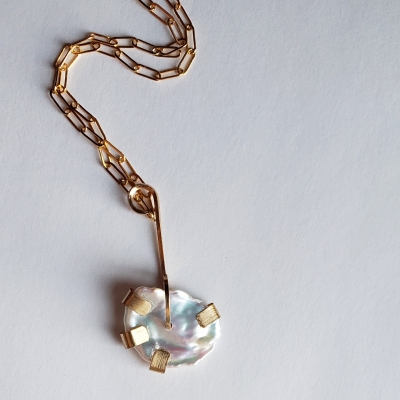 Lovely white keshi perl pendant, 14k gold filled.