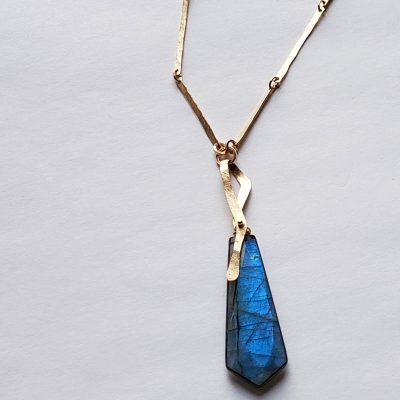 Stunning blue labradorite pendant, hand made chain, 14k gold filled.