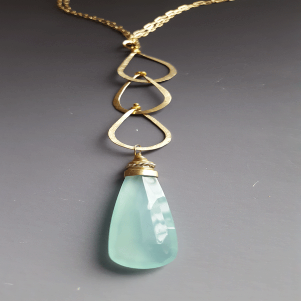 Necklace with blue chalcedony teardrop pendant, 14kt gold filled, handmade. N16